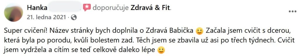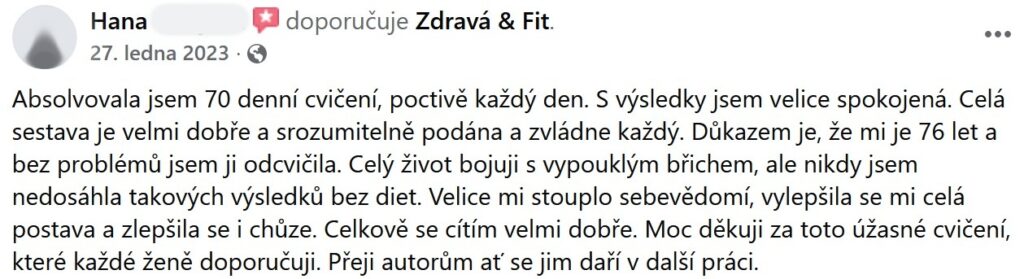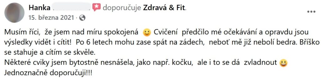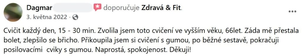"Hanka, 69 let: Po cvičení mě nebolí záda a bříško se stahuje. Cítím se skvěle a jednoznačně doporučuji."