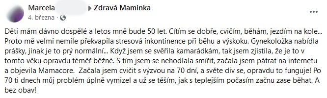 "Marcela, 50 let: Trápila mě stresová inkontinence. Po cvičení můj problém vymizel. Těším se, až začnu bez obav běhat!"