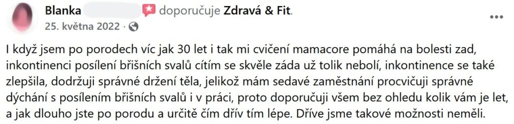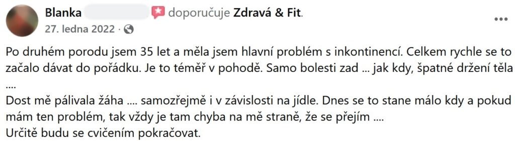 "Blanka, 64 let: Inkontinence se zlepšila, záda už tolik nebolí. Doporučuji všem!"