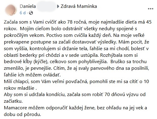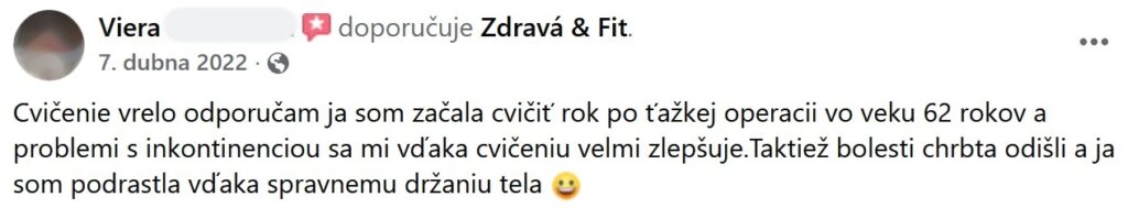 "Viera, 62 let: Bolesti zad odešly a problém s inkontinencí se zlepšuje. Cvičení doporučuji!"