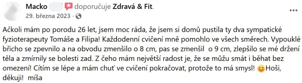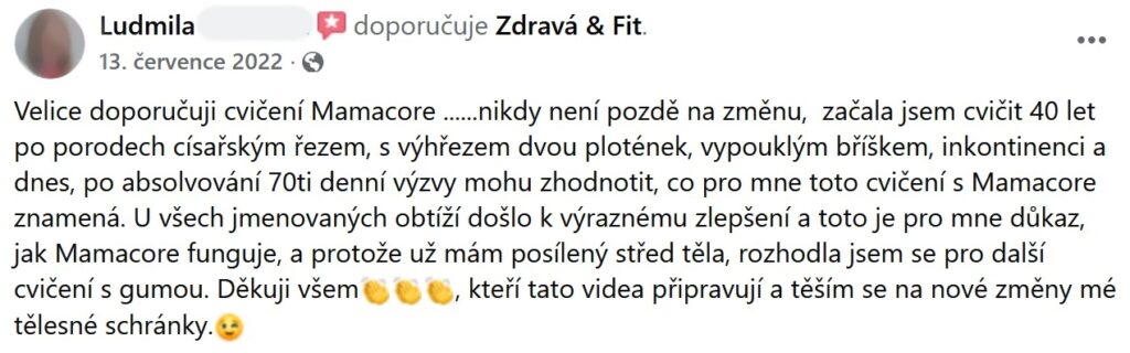 "Zuzana, 61 let: Cvičením řeším bolesti zad, diastázu i vypouklé břicho. Určitě doporučuji."