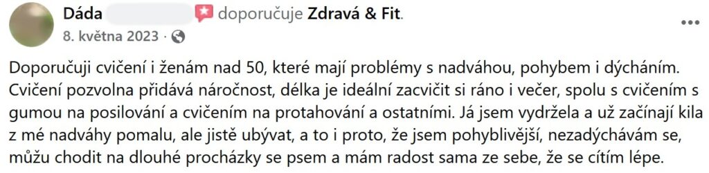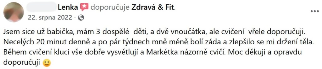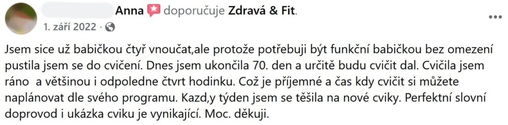 "Anna, 62 let: Pefektní slovní doprovod i ukázka cviků, moc děkuji."